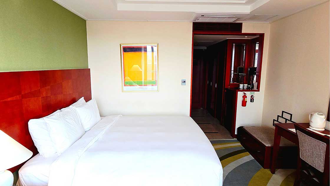 | 客室サイ | 28.05㎡ | ベッドタイプ | 横180cm × 縦200cm (クイーンベッド1台) | ルーム構成 | 寝室1台、バスルーム1台 |